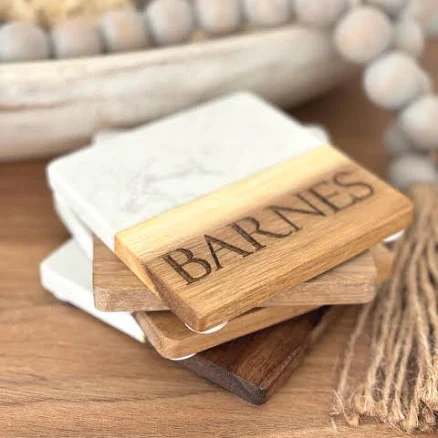 Personalized Wood Coaster Set Wedding GiftEngraved Made$11.25