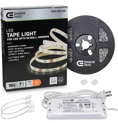 Commercial Electric 16 Ft. LED AC Dimmable White Tape Light Kit